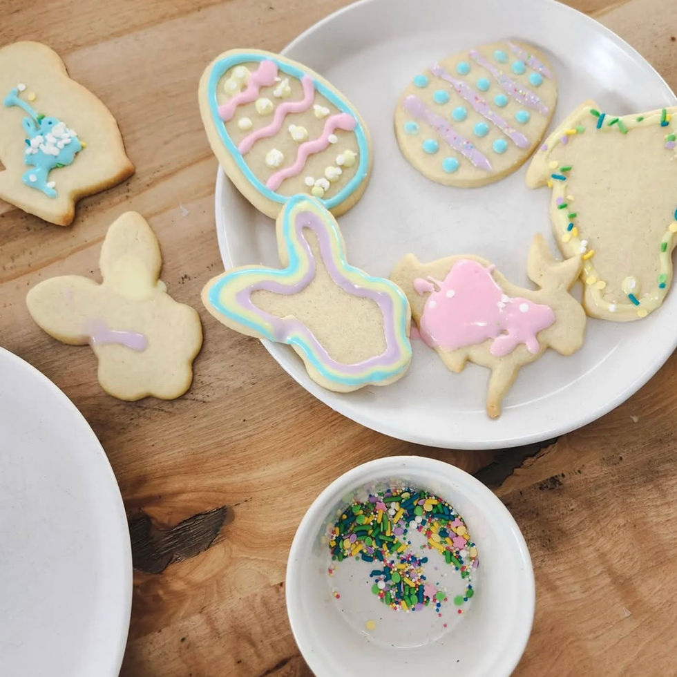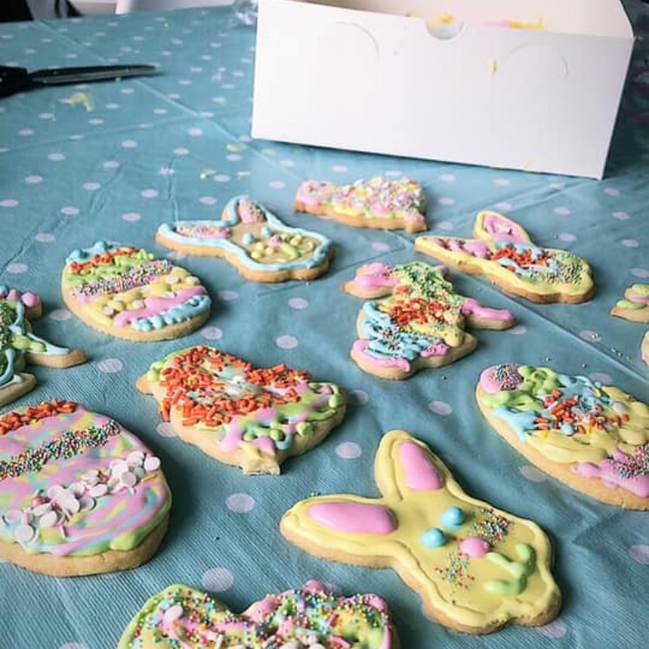 Chaque boite comprend : - 12 biscuits (4 modèles différents) Lapin- coco-poussin - lapin autre modele- 4 poches de glaçage coloré - 3 sachets de bonbons à décorer (ceux ci peuvent variés) et un carton d’instruction **Les biscuits et le glaçage peuvent être congelés jusqu'a 6 mois.
