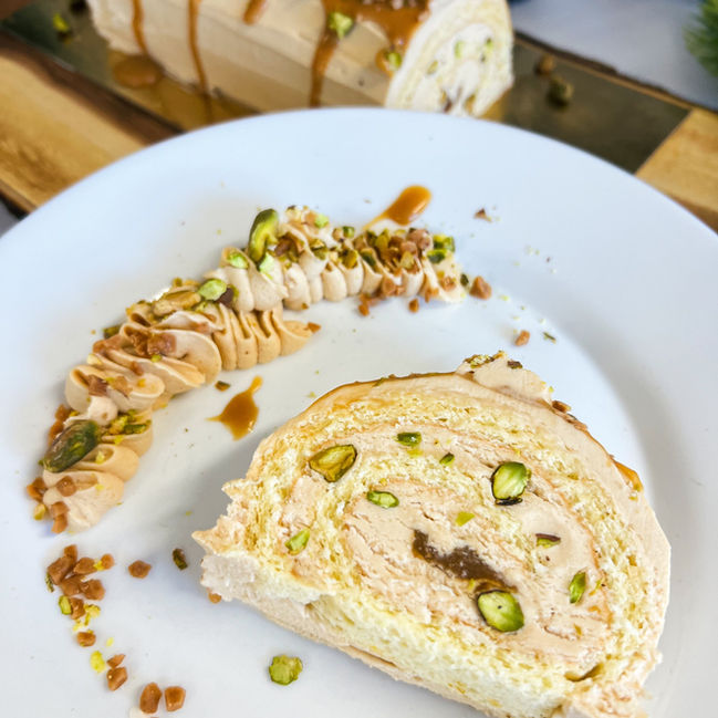 Laissez-vous tenter par les saveurs exquises de notre Bûche deluxe pistache et caramel fleur de sel. Réalisé avec une délicate génoise à la vanille et fourré d'une riche ganache chocolat blanc au caramel fleur de sel, cette bûche offre une expérience gustative inoubliable. Elle est garnie de pistache croquante pour une touche de texture et de saveur supplémentaire. Le centre de caramel apporte une touche succulente et décadente à ce dessert, en faisant un véritable délice pour les fans de pistache et de caramel.